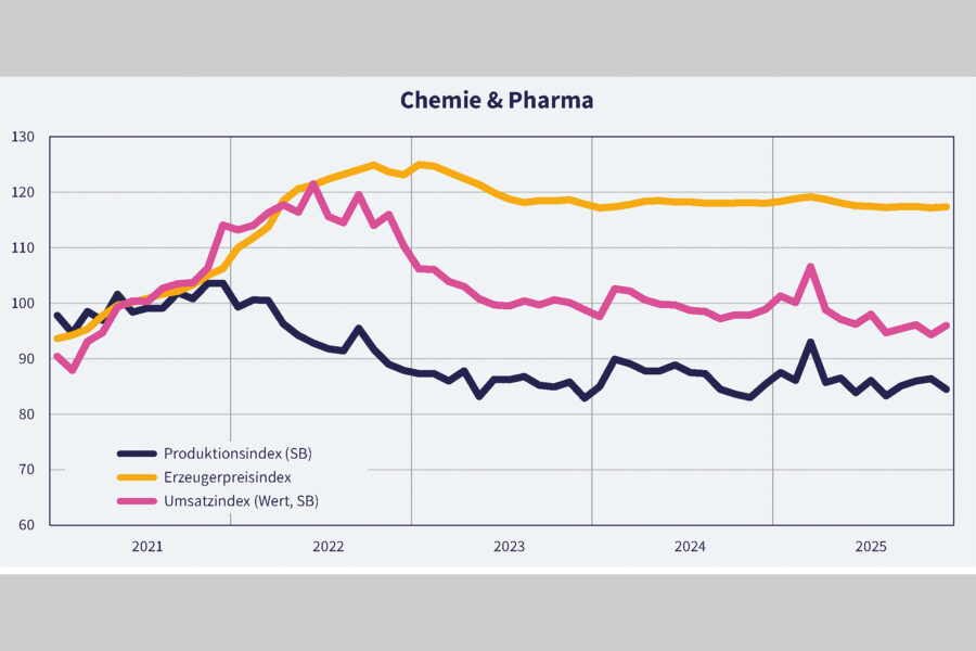 Zum Jahresbeginn bleibt das Chemiegeschäft weiter extrem herausfordernd: Die Branchenunternehmen bewerten ihre aktuelle Geschäftslage immer noch negativ. Dies steht im Einklang mit den jüngsten Konjunkturindikatoren. Die Auftragseingänge waren rückläufig und lagen zuletzt um 6,7 % unter Vorjahr – die Inlands- und Auslandsnachfrage blieb schwach. Auch die Produktion setzte ihren Rückwärtsgang ungebrochen fort, Erzeugerpreise waren unter Druck und die Umsätze verfehlten ihr Vorjahr zuletzt um ganze 7 %.